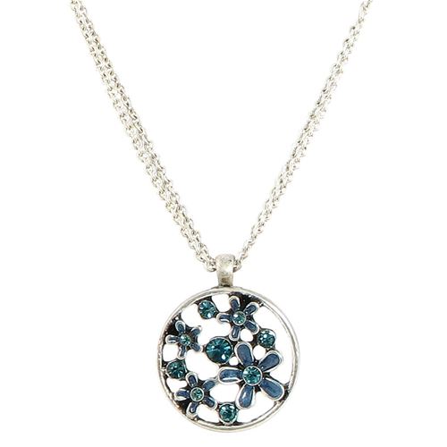 Enamel flower pendant with Austrian crystals on a double 16"-19" adjustable chain.