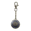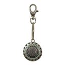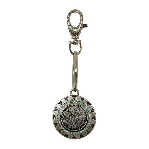 Ethnic motif keychain/bag charm with Austrian crystal accents and textured back. Available in two colors.