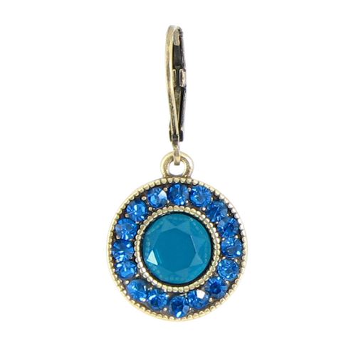 Delicately set in a granulated setting, these multi-colored Austrian crystal earrings offer a refreshing burst of color. Plated in 12 karat gold, they dangle from hinged ear wires.