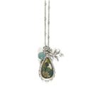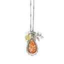 Multi-colored printed motifs in a decorative teardrop setting on an adjustable 16"-19" chain. Made in America, plated in antique sterling silver. Coordinating earrings available.