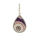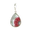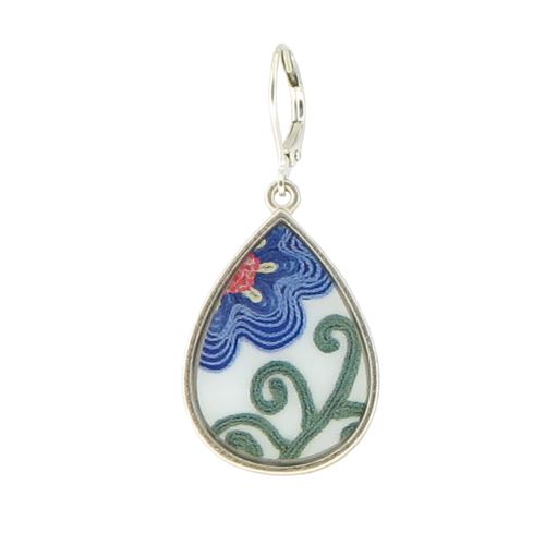 Robin's fabric collage teardrop, reproduced in a sterling silver plated setting. Made in America. L: 1 1/2" W: 3/4"