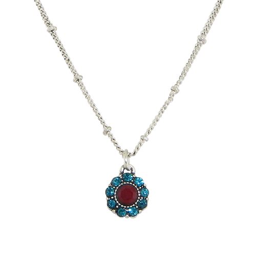 This colorful and delicate hand crafted Austrian crystal flower necklace is plated in sterling silver and comes on an adjustable 16"-19" chain. Coordinating earrings available.