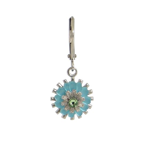 This unique combination of color and texture are handcrafted in America with glass, metal, and Austrian crystals. Plated in sterling silver, they hang from hinged ear wires with coordinating layered necklaces.