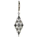 Accent your look with these vintage deco earrings studded with multi-colored Austrian crystals. Made in America, they're plated in antique sterling silver and dangle from hinged ear wires.